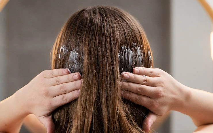 2- ترطيب الشعر من الجذور والفروة لحد الأطراف: